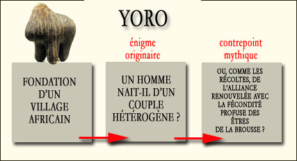 Les mythes de fondation sont des récits se déroulant en contradiction de la donnée paradoxale de base — il faut un homme et une femme pour fabriquer un enfant — et les mythes de fondation racontent néanmoins la naissance de l'être humain. Mais attention! Pas d'un humain abstrait, comme on a tendance à le croire, d'un humain particulier — autrement dit, certes le premier des hommes, mais dans un même élan, le premier des Thébains, le premier des Juifs, le premier des Mossi… Ainsi, le mythe d'Œdipe n'est pas le récit de la naissance d'humains abstraits mais celui de la fondation de la ville de Thèbes, tout comme celui d'Abraham est celui de la fondation du peuple juif, tout comme celui de Naaba Werdraogo, celui de la fondation du peuple mossi, Yoro, celui de la fondation des Manding et Soumaoro celui des Soussous de Guinée.